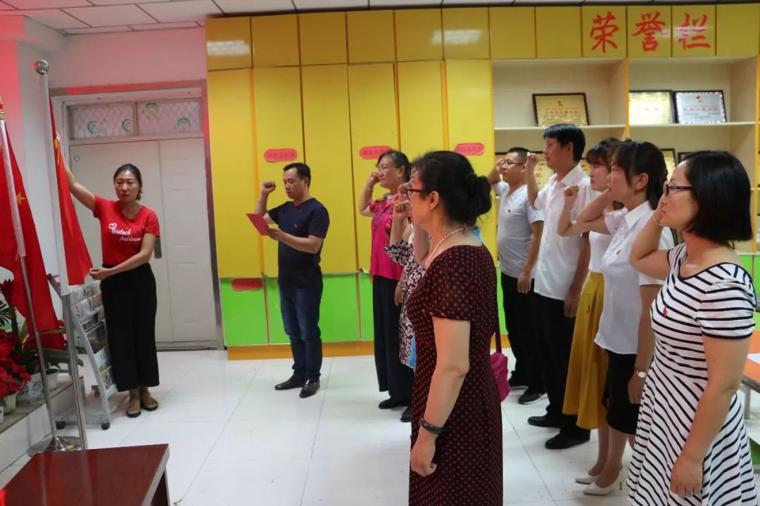 此刻,全体党员凝神伫立:“我志愿加入中国共产党,拥护党的纲领……永不叛党。”全体党员用铿锵有力、忠贞不移的誓言,向退休老党员表示崇高的敬意。